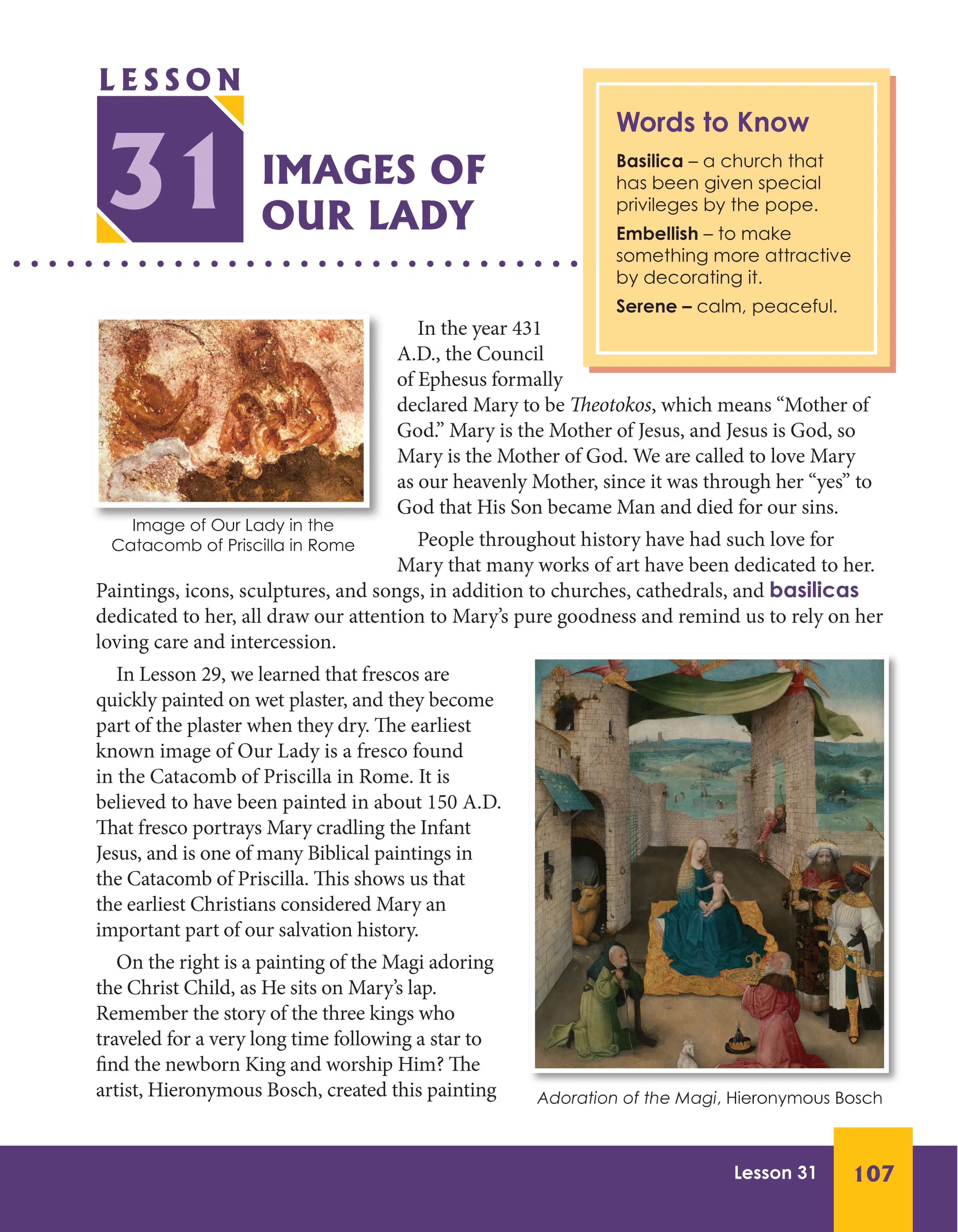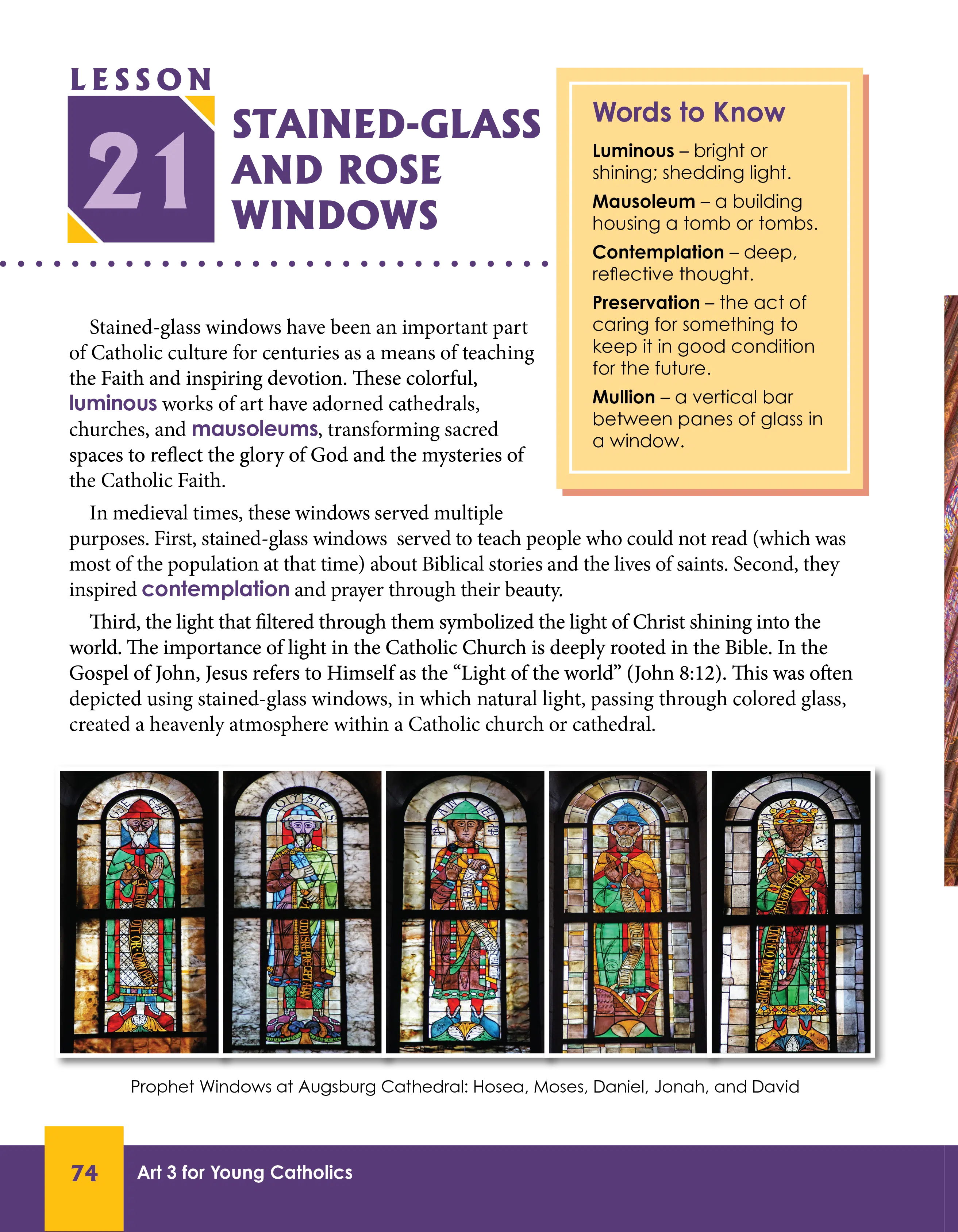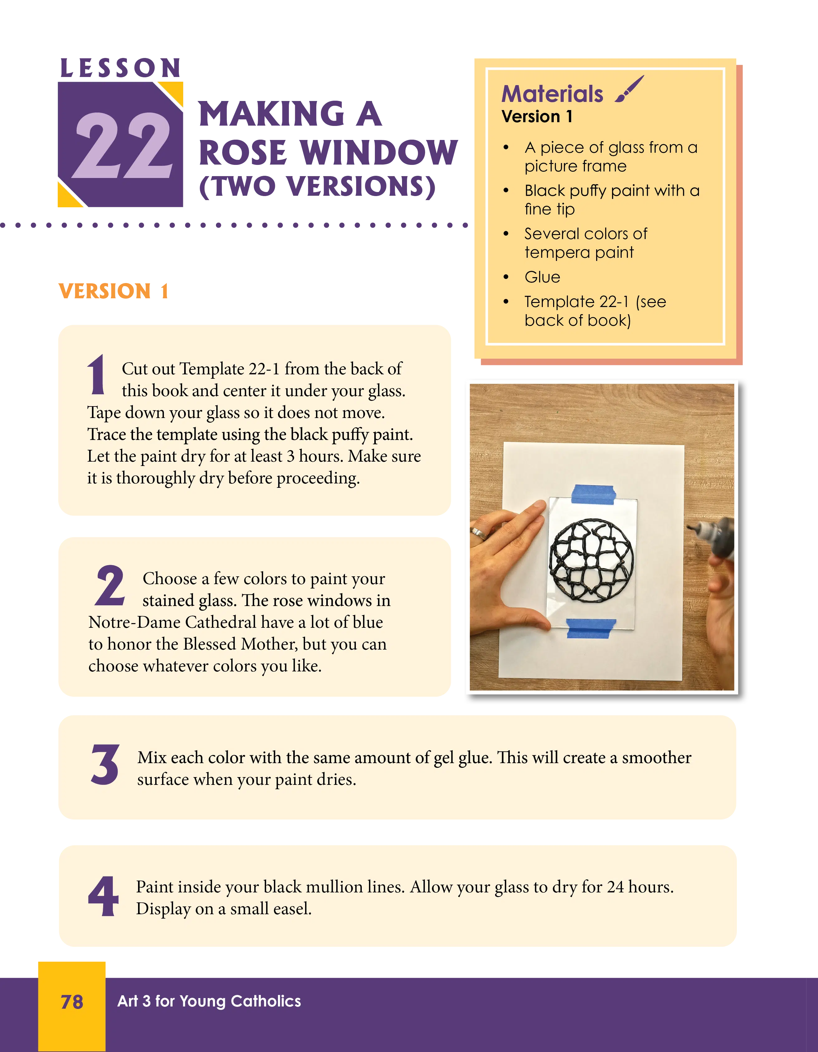 Art 3 is an entirely new course and book. This is the crown jewel of our 2025 curriculum updates. Historically, our Seton Art courses have either been art appreciation like the Rosary in Art (Grade 5) or Art Through Faith (Grade 8). Those are beautiful by virtue of the art that is in them to be sure, but there really isn’t any hands-on component to those courses. Other courses, like Art 1 and the old Art 3, are more purely arts and crafts courses. They don’t have much in terms of appreciation and are filled with older black and white line drawings used in the crafts. Those books wouldn’t usually be called beautiful apart from their covers. The new Art 3 (2nd Edition) combines art appreciation with hands-on projects. In one lesson, you learn about rose windows and stained glass, and then in the next lesson, you make your own rose window!