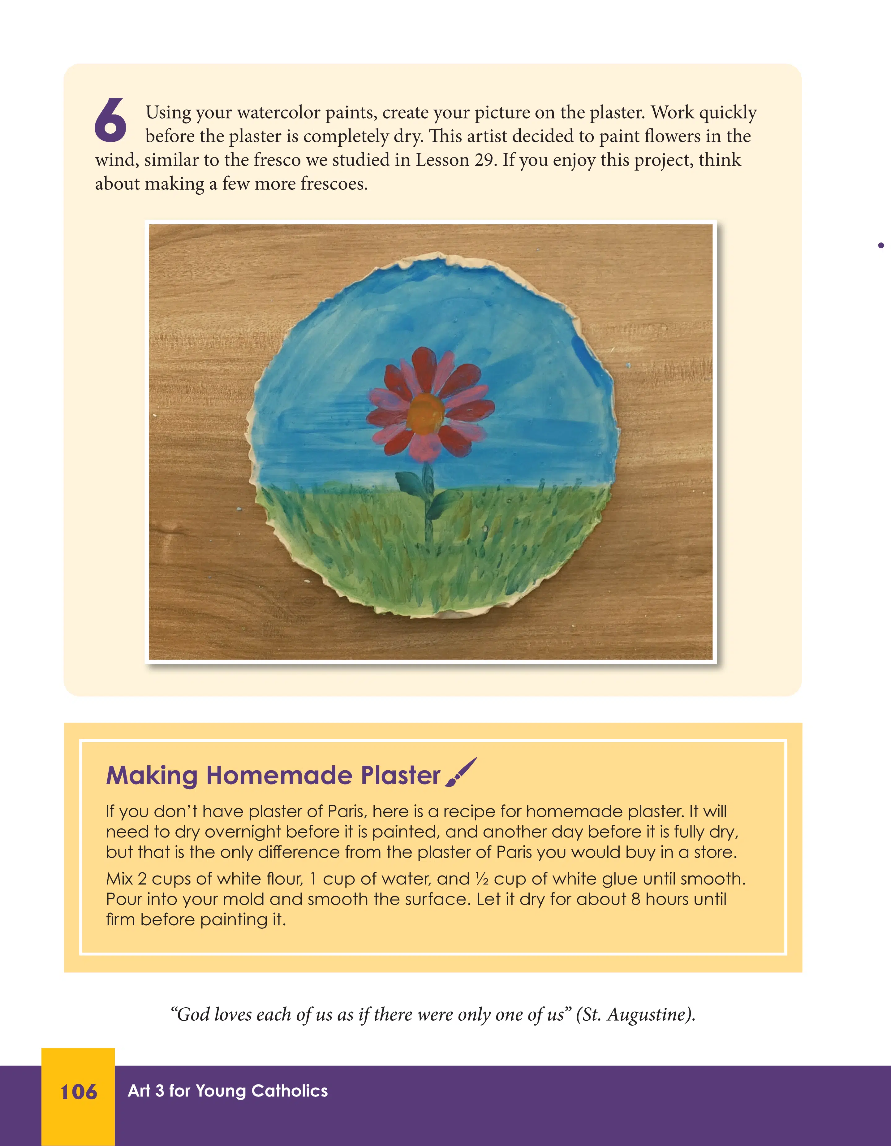 The book was designed by Mary Ellen Barrett, the primary author of our popular new Kindergarten Art and Poetry course. The new Art 3 also has project step-by-step instructions far superior to anything we have done before. Seton’s staff artist, Nathan Puray created videos showing how each project can be completed, and the book itself shows picture demonstrations of the steps and final product samples to help guide parents and students. Many of the supplies needed are regular household items, but our Seton bookstore team has also created a package of paints and other supplies that you can purchase. While the kit doesn’t include all the supplies needed like paper, it includes most items needed to complete the projects in the book.