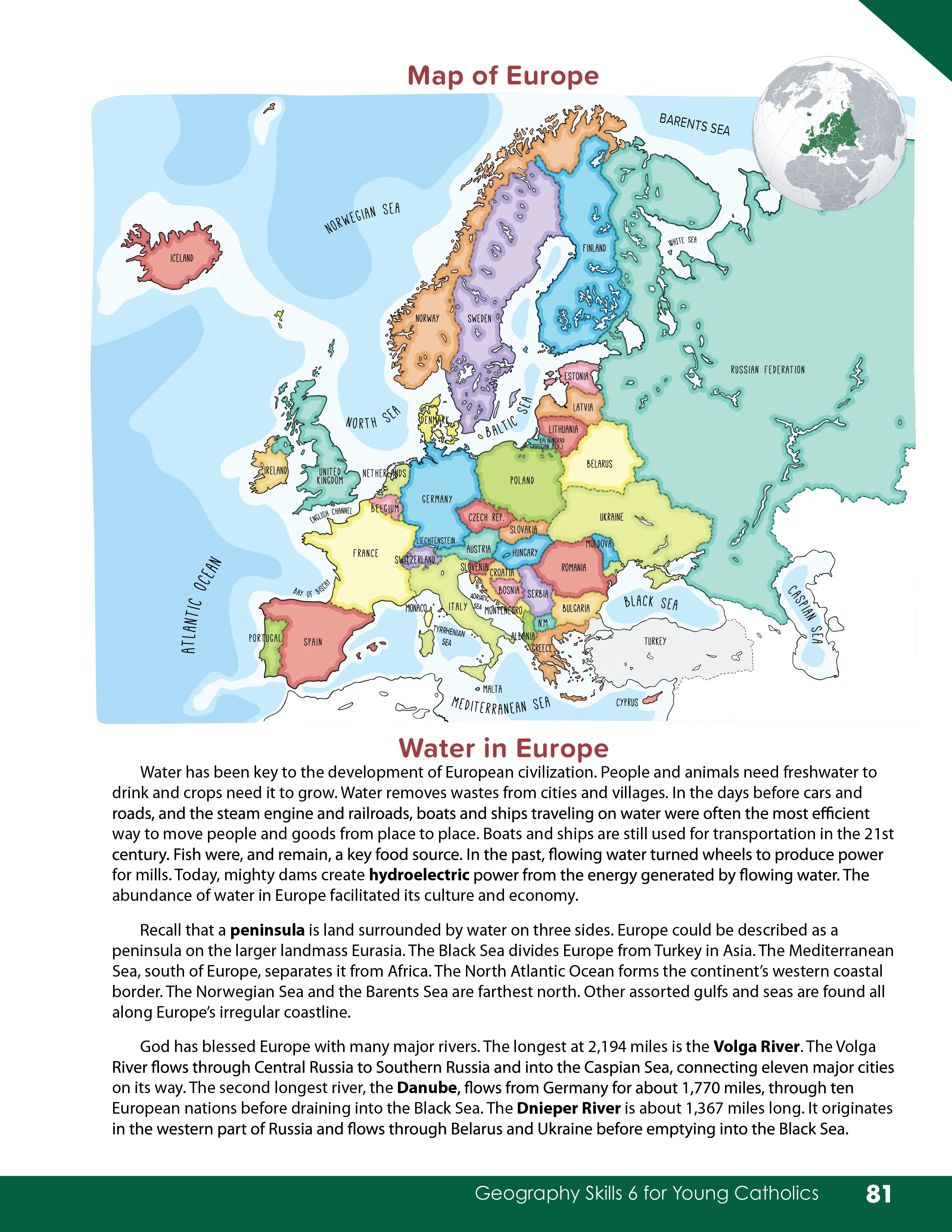 History 6 has a new Geography Skills 6 workbook. This is the latest addition to our Catholic Geography Skills series and pairs with the Geography Skills 7 book that came out last year. Level 6 covers North and South America as well as Europe and then the Level 7 book covers Asia, Africa, and Oceania. These books cover serious geography content, not just map skills like the old Continental Press or Scholastic books. These cover the Geography, History, Government, Culture, and Economies of many of the major countries in each region in addition to learning map skills. Most importantly, they are Catholic, so they also have some information about the Church or local saint in many of the countries.