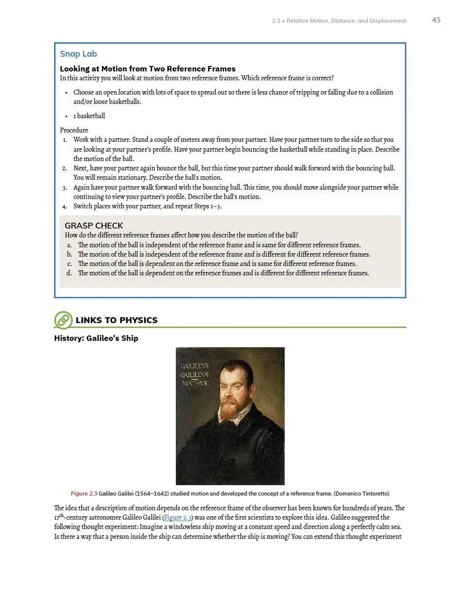 The new Physics course requires Geometry as a prerequisite. The textbook is an OpenStax textbook that has been modified slightly by Seton. OpenStax is an organization that creates free “open source” college textbooks and they have been branching into some high school subjects as well. While the books are purely secular, Seton has gone through to ensure there is nothing objectionable, removed some things that might be considered controversial, and even removed a few chapters that didn’t seem necessary for our course. This course focuses on Newtonian Physics without delving into the more advanced relativistic and quantum physics as those require more advanced math. It is crucial to make sure students have a strong grasp of the fundamental concepts which they can more easily grasp before moving into the more advanced concepts.